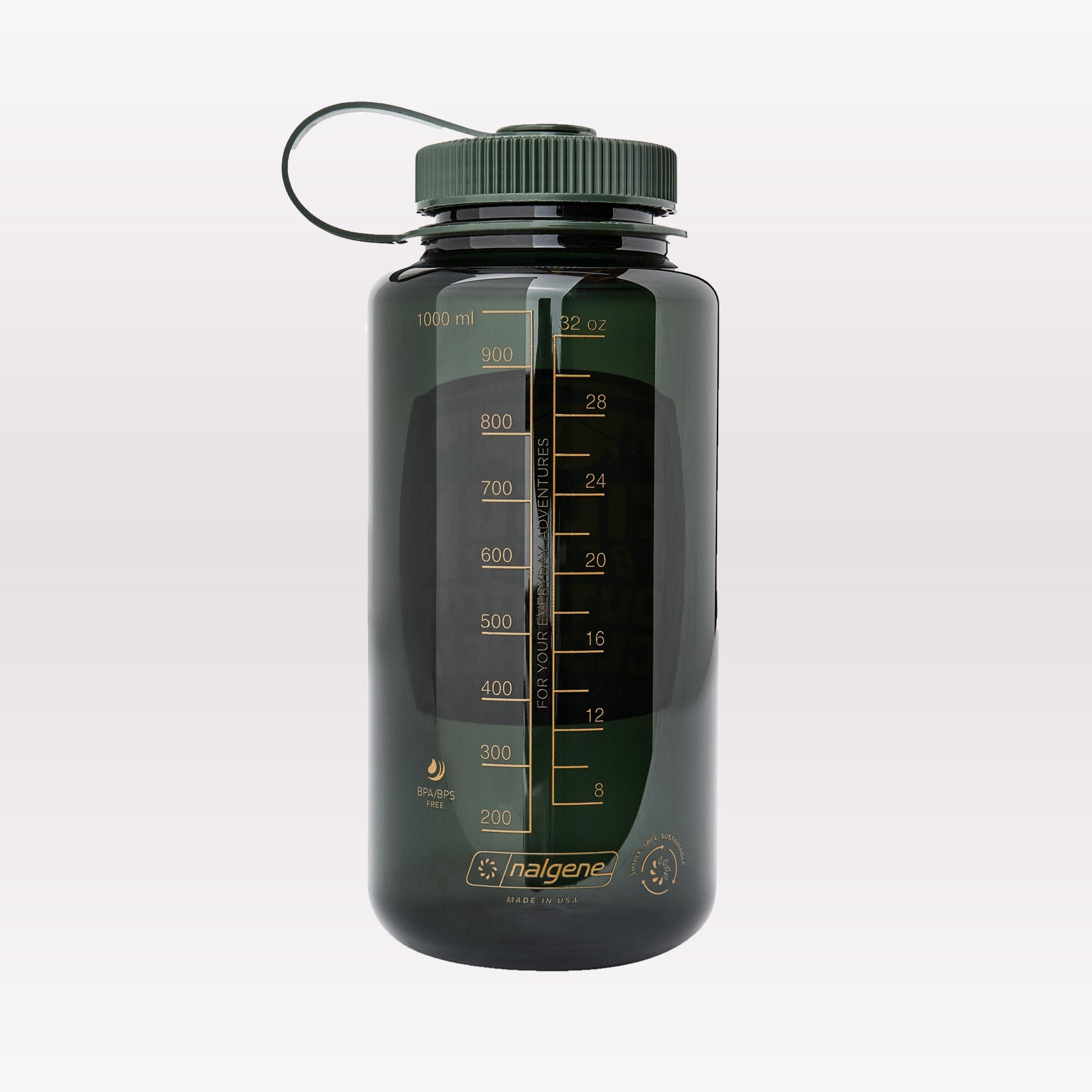 Made with unbreakable BPA-free plastic and custom graphics. Wide mouth opening for fast filling. Lid is tethered to prevent loss. Top threads are compatible with many filtration systems. BPA-free plastic. Made in USA.
